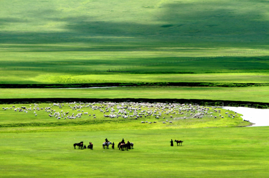 1、草原:呼伦贝尔的草原,犹如一幅幅美丽的画卷,让人陶醉,这里有著名的呼伦湖、贝尔湖,还有广袤的呼伦贝尔大草原,在这片绿色的海洋中,牛羊成群,骏马奔腾,构成了一幅生机勃勃的画卷。